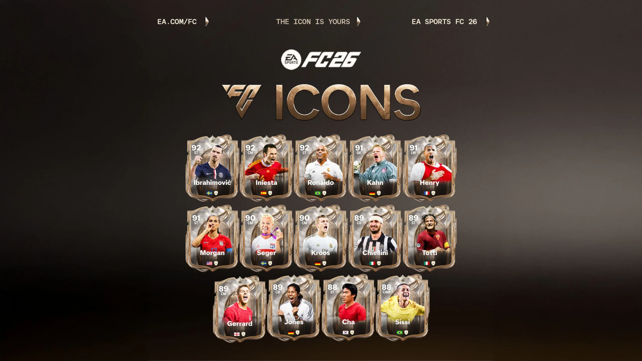 EA has officially unveiled the legendary icons available as part of the EA SPORTS FC 26 Ultimate Edition pre-order bonus. Fans who order before August 26 will receive a Debut Icon at launch, which will automatically upgrade to a Champion Icon in November. This year’s lineup includes some of the most decorated and influential footballers in history, spanning multiple eras, nations, and positions.